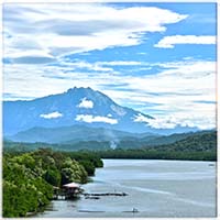 Tuaran is a bustling little town with tree-lined boulevard-style streets and the distinctive nine-storey Ling San Pagoda, whose approaches are dominated by vividly painted guardian deities.